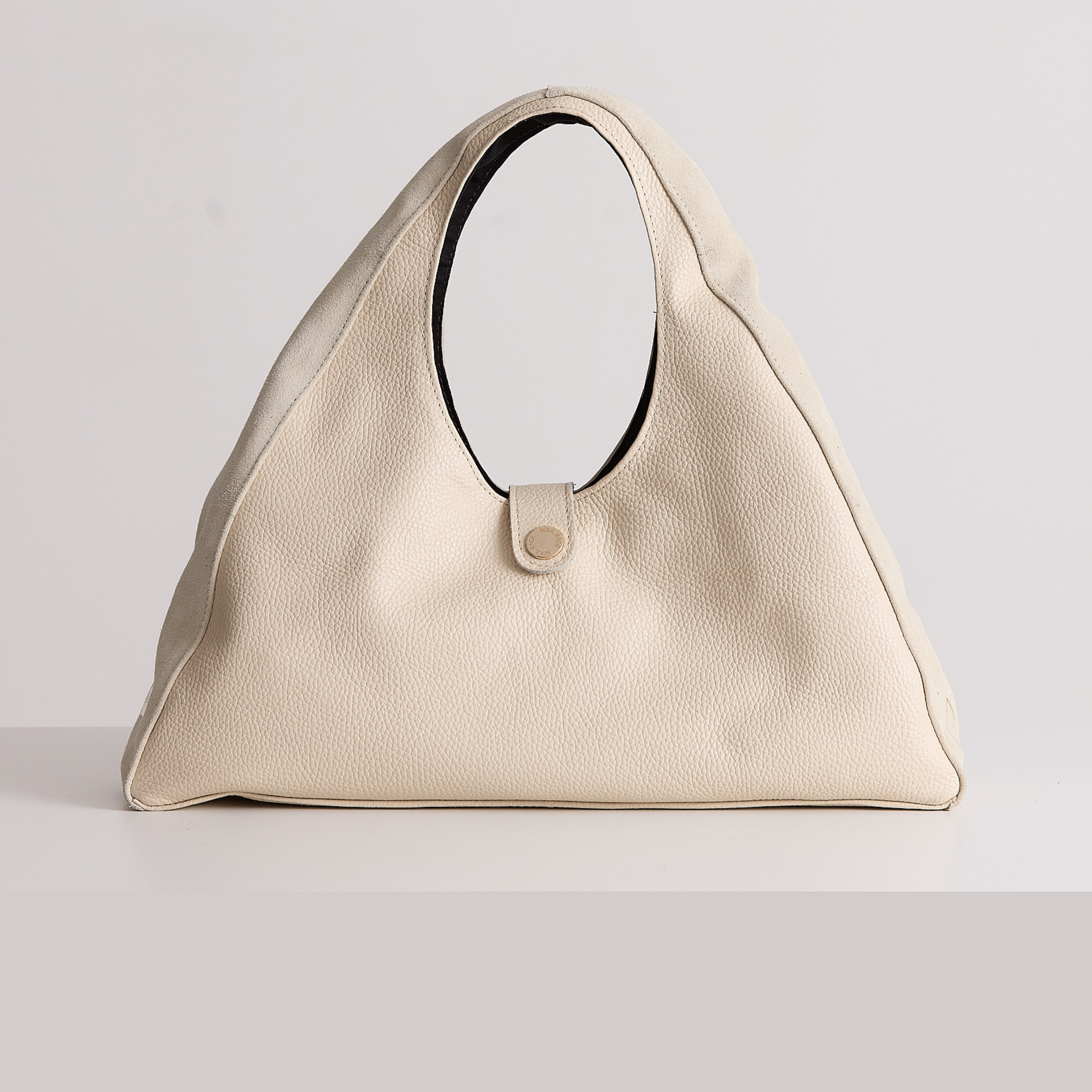 Questa hobo bag unisce l'eleganza della pelle bottolata alla raffinatezza del camoscio, creando un equilibrio perfetto tra stile e praticità. Caratterizzata da una forma morbida e arrotondata, la borsa offre un design versatile e capiente, ideale per un look casual-chic. All'interno una comoda borsetta in camoscio.